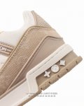 Louis Vuitton 2025 New Skate Sneaker, a limited edition Spring/Summer sneaker for the Year of the Snake, debuted on the runway and is now presented in a refreshed version of grained cowhide leather. The padded collar and tongue draw inspiration from skateboarding shoe designs, while technical laces and a rubber outsole complete the overall look. The upper features a combination of grained cowhide leather and mesh, a rubber outsole, and Louis Vuitton logos on the tongue and heel. Sizes: 36-45 Code: Ewgt1018Zbl