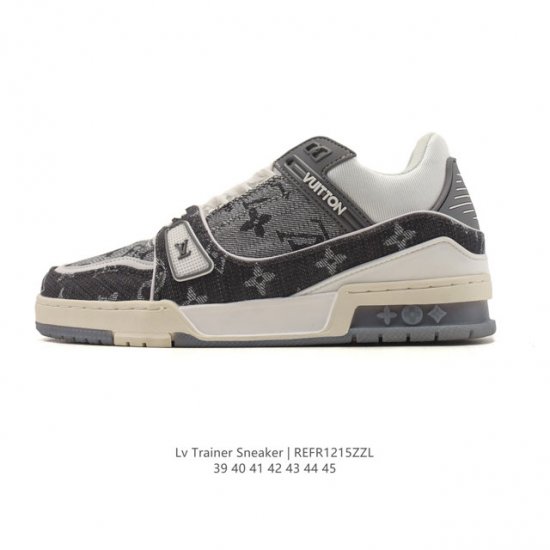 Louis Vuitton Lv (LV) Trainer Sneaker Low, a fashionable and stylish platform sneaker for men and women. Comfortable, non-slip sole and versatile design make it a staple in the fashion world. Perfected details! Features a soft leather upper, an exclusive molded outsole, and a 3D-printed iconic logo on the side, exuding aristocratic style. Comes with authentic packaging. The new Louis Vuitton Trainer Sneaker Low is a versatile casual sneaker for sports and culture. Type: Men's and Women's Shoes; Sizes: 36-45; Code: Refr1215Zzl