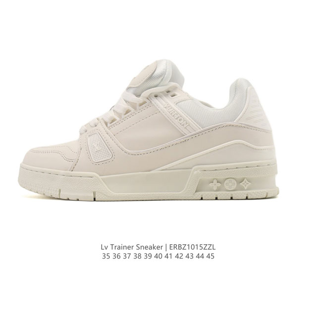 Louis Vuitton Trainer Sneaker Low, a stylish and trendy platform sneaker for men and women. Comfortable, non-slip sole and versatile design make it a staple in the fashion world. Perfected details! Features a soft leather upper, an exclusive molded outsole, and a 3D-printed iconic logo on the side, exuding aristocratic style. Comes with authentic packaging. The new Louis Vuitton Trainer Sneaker Low is a versatile sneaker for casual sportswear. Sizes: 35-45. Code: Erbz1015Zzl.