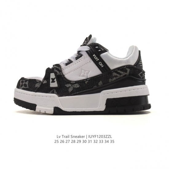 Louis Vuitton Trainer Sneaker Low for Kids - Fashionable Sports Shoes with Thick Sole and Height Increasing. Comfortable, non-slip sole and versatile style dominate the fashion scene. Perfected details! Denim upper, exclusive molded outsole, 3D printed iconic logo on the side exuding aristocratic style. Comes with authentic packaging. New Louis Vuitton Trainer Sneaker Low - Casual Sports Shoes. Type: Children's Shoes. Sizes: 25-35. Code: Iuyf1203Zzl.