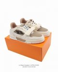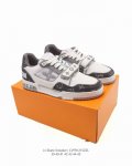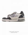 Lv Skate Sneaker, Louis Vuitton's new 2025 limited-edition Spring/Summer sneaker, debuted on the runway and presented in a refreshed version with grained calfskin leather. The padded collar and tongue draw inspiration from skateboarding shoe designs, while technical laces and a rubber outsole complete the look. The upper is made of grained calfskin leather, the outsole is rubber, and the tongue and heel of the sole are adorned with the Lv logo. Sizes: 39-45 Code: Cvfr1215Zzl
