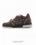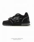 Lv Skate Sneaker: Louis Vuitton's new 2025 limited-edition Spring/Summer sneaker, a Year of the Snake limited edition, debuted on the runway, this time presented in a refreshed version of grained calfskin leather. The padded collar and tongue draw inspiration from skateboarding shoe designs, while technical laces and a rubber outsole complete the look. The upper is made of grained calfskin leather, the outsole is rubber, and the tongue and heel of the sole are adorned with the Lv logo. Sizes: 39-45 Code: Nbfr0 Zzl