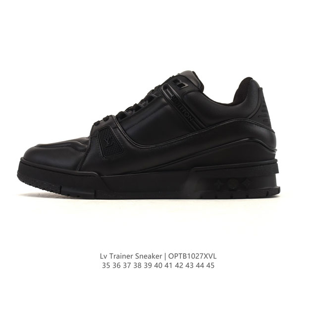 Special Price Original Price Company Grade Louis Vuitton Trainer Sneakers, Fashionable Sports Shoes, Thick Sole, Height Increasing, Men's and Women's Shoes. Comfortable and non-slip sole and versatile, dominating the entire fashion and entertainment industry. Perfectionist details! Features a soft leather upper, an exclusive molded outsole, and a 3D-printed iconic logo on the side, exuding aristocratic style. Comes with authentic packaging. Brand new Louis Vuitton Trainer Sneaker Low, a casual sportswear shoe that's versatile and stylish. Type: Men's and Women's Shoes Size: 35-45 Code: Optb1027Xvl