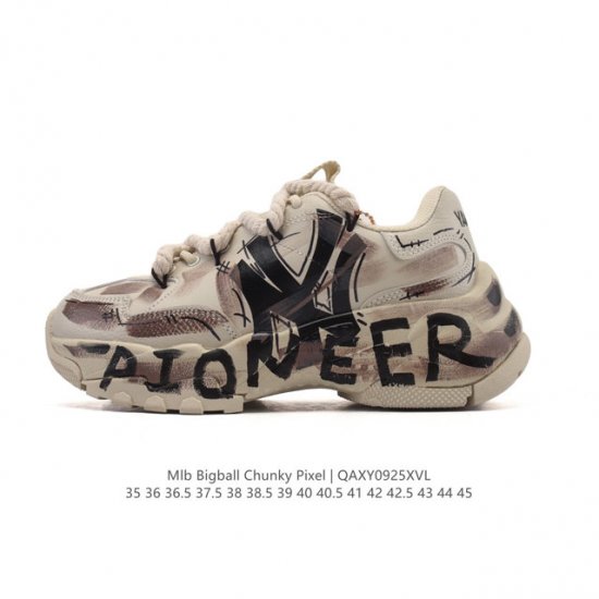 Company-level Korean Mlb men's and women's retro dad Mlb Bigball Chunky pixel retro print deconstruction lace-up double shoelaces men's and women's thick-soled height-increasing New York Yankees dad sports casual running shoes. Mlb's dad shoes have always been popular with everyone. The version is good-looking, the thick sole has an obvious height-increasing effect, it is very versatile when worn, the foot feel is relatively comfortable, and the color is also very beautiful. Each color has its own characteristics and is especially easy to match with clothes. It makes the legs look longer and increases height by 5-6cm. And it can be worn in all seasons. It is a must-have for street fashionistas to go out and shape ~ Don't worry and go boldly