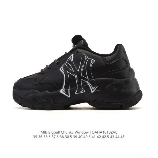 Company-grade MLB Bigball Chunky New York Yankees platform sneakers, unisex retro sneakers, casual classic athletic shoes. Features a thick sole and contrasting Ny logo on the side for a stylish look, showcasing a unique and strong fashion sense. MLB chunky sneakers have a durable, soft upper and a thick, elastic insole for comfortable grip. Unlike traditional chunky sneakers, they look heavy but are actually very comfortable and lightweight. The 6cm high insole also creates a leg-lengthening effect. Style Number: 3Asxca12N C0001 Sizes: 35-45 (including half sizes) Code: Qaha1010Zvl