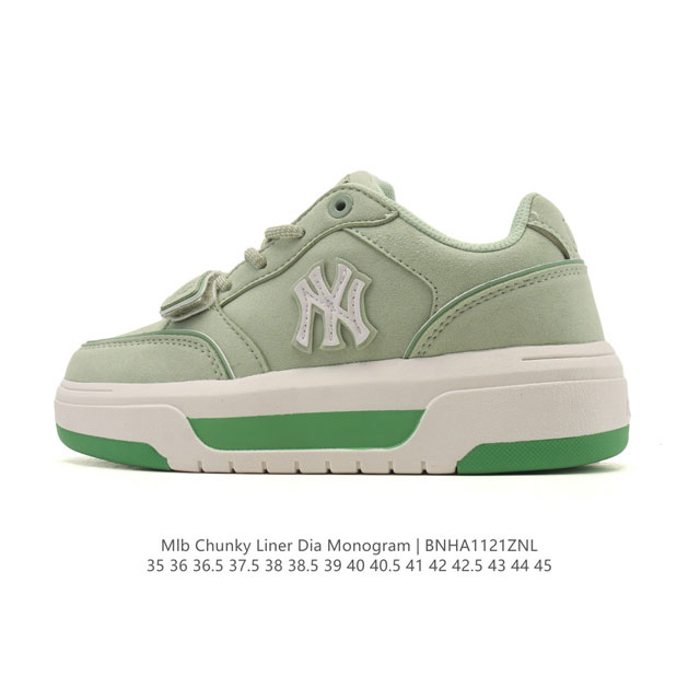 Mlb Chunky Liner Mid, a popular high-end streetwear brand featuring lightweight, platform, and versatile casual sneakers. Inspired by the cool, direct shots hit by batters, the Mlb Chunky Liner features reflective piping details on the leather upper and is available in both high-top and low-top versions, offering a fresh "youthful" look for trendsetters. Besides the retro style, there are also fresher color options, exuding a clean and youthful vibe. Style Number: 3Asxp30N Gp20 Sizes: 35-45 (including half sizes) Code: Bnha1121 Znl