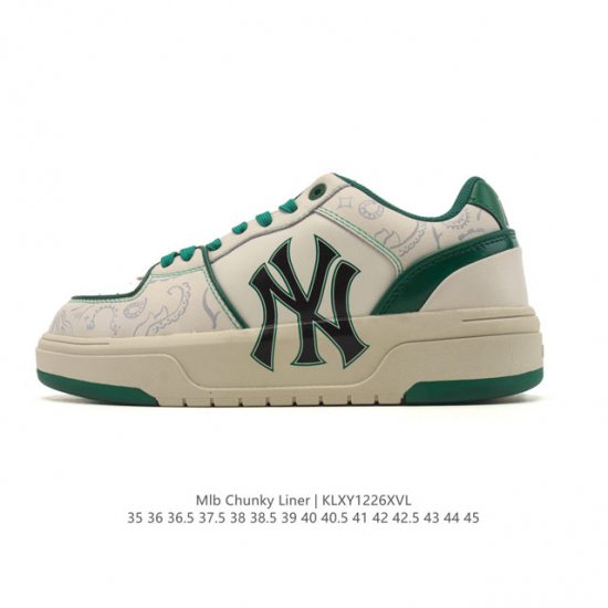 Mlb Chunky Liner Mid, a popular high-end streetwear brand shoe. This lightweight, platform, versatile, casual, and sporty shoe features a high-quality feel. Inspired by the cool, direct shots hit by batters, the Mlb Chunky Liner incorporates reflective piping details on the leather upper and continues to be available in both high-top and low-top styles, offering a fresh "youthful" look for trendsetters. Besides the retro style, there are also fresher color options, exuding a clean and youthful vibe. Style Number: 3Asxmo56N G Sizes: 35-45 (including half sizes) Code: Klxy1226Xv l