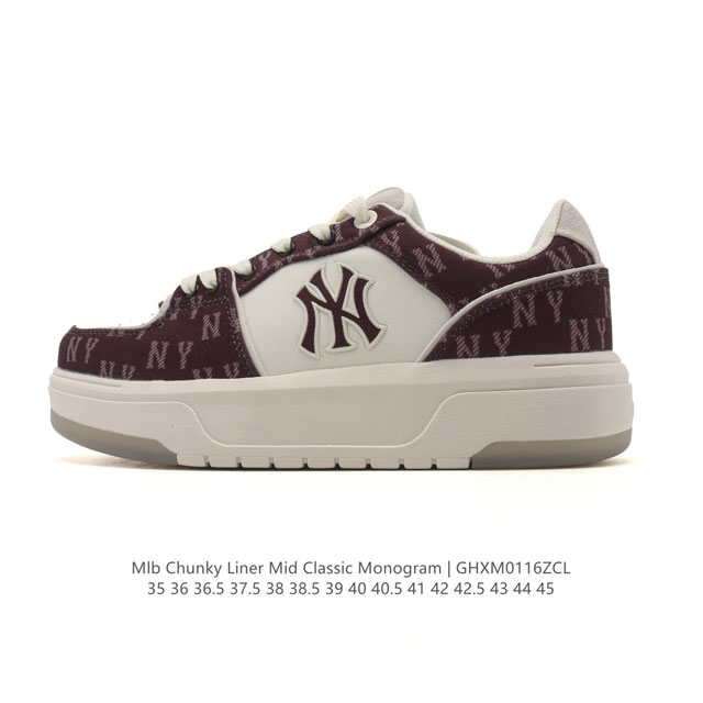Mlb Chunky Liner Mid - A popular item from the "Senior" series. Lightweight, platform, versatile, casual, athletic sneakers from a premium streetwear brand. Inspired by the cool, direct shots of baseball players, the Mlb Chunky Liner features reflective piping details on the original leather upper. Available in both high-top and low-top styles, it offers a fresh "youthful" look for trendsetters. Besides the retro style, there are also fresher color options, exuding a clean and youthful vibe. Style Number: 3Asxm016N G Sizes: 35-45 (including half sizes) Code: Ghxm0116Zcl