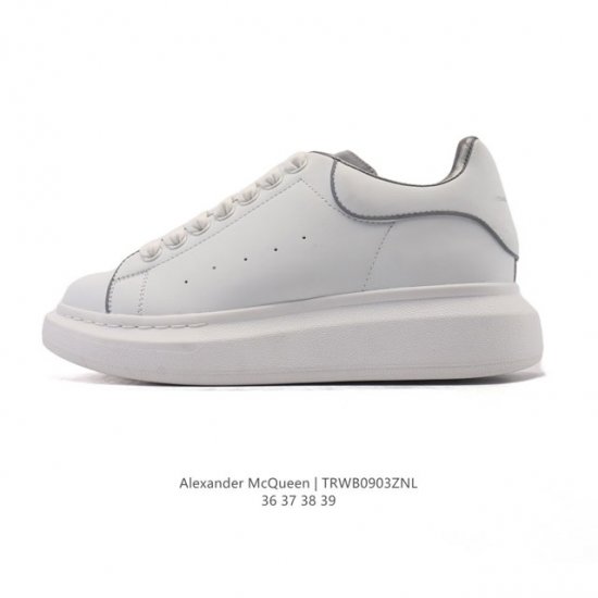 Alexander McQueen's white sneakers, featuring thick soles, height-enhancing glittering tails, and smooth leather flats, are a trendy women's casual sneaker. They're incredibly popular, instantly slimming and height-enhancing. The height-enhancing effect isn't just talk; a 4.5cm increase instantly elongates your legs. The vacuum-sealed rubber outsole provides exceptional comfort, making them incredibly popular.