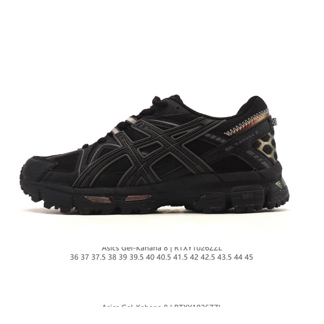 Asics Gel-Kahana 8 Men's and Women's Trail Running Shoes - Grip, Stability, Cushioning, and Durable. The Gel-Kahana series is a practical trail running shoe that makes a strong comeback by combining functionality and outdoor style. The core Gel technology is built into the heel, combined with the Speva elastic midsole to reduce the impact on the foot upon landing. The Dynamic Duomax dual-density anti-pronation device on the medial side of the midsole, midfoot reinforcement structure, and heel geometry provide multi-faceted support and protection. The Ahar durable rubber outsole with grooved treads enhances grip. Outsole material: Rubber. Closure type: Lace-up. Boot height: Low-Top inches. Upper type: Synthetic mesh. Heel Gel cushioning system: Reduces impact for a smooth transition. Trusstic system: Reduces sole weight while maintaining the integrity of the shoe structure. Trail running outsole: Reverse flange provides traction for uphill and downhill sections on various terrains. Type: Men's and Women's Shoes Product Number: 1012B892-101 Sizes: 36-45 (including half sizes) Code: Rtxy1026Zzl