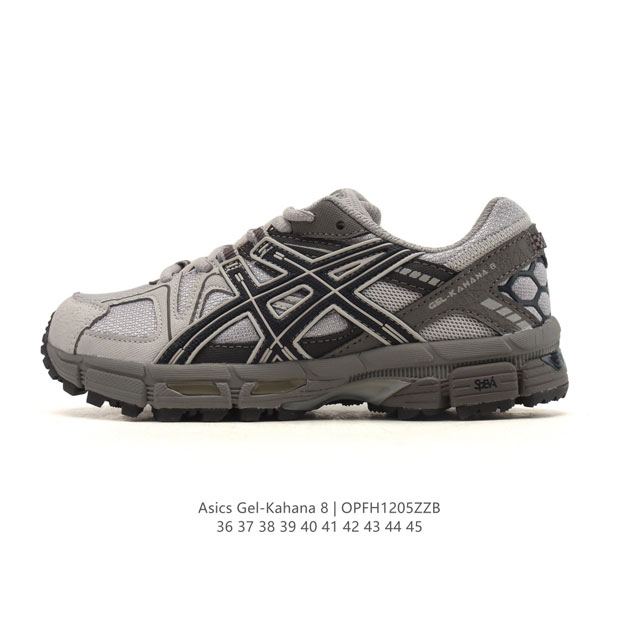 Asics Gel-Kahana 8 Men's and Women's Trail Running Shoes - Grip, Stability, Cushioning, and Durable. The Gel-Kahana series is a practical trail running shoe that makes a strong comeback by combining functionality and outdoor style. The core Gel technology is built into the heel, combined with the Speva elastic midsole to reduce the impact on the foot upon landing. The Dynamic Duomax dual-density anti-pronation device on the medial side of the midsole, midfoot reinforcement structure, and heel geometry provide multi-faceted support and protection. The Ahar durable rubber outsole, with its grooved tread design, enhances grip. Outsole material: Rubber. Closure type: Lace-up. Boot height: Low-Top inches. Upper type: Synthetic mesh. Heel Gel cushioning system: Reduces impact for a smooth transition. Trusstic system: Reduces sole weight while maintaining the integrity of the shoe structure. Trail running outsole: Reverse flange provides traction for uphill and downhill sections on various terrains. Type: Men's and Women's Shoes Item Number: 1012B892-101 Sizes: 36-45 Code: Opfh1205Zzb