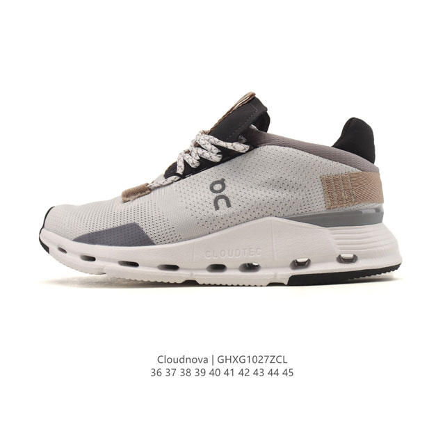 Authentic On Cloudnova All-Weather Lightweight Cushioning Comfortable Breathable Men's and Women's Sneakers. These street-style sneakers feature On's signature running shoe technology, delivering a lightweight feel and stylish look. Materials: High-performance mesh, rubber outsole, perforated panel, reflective accents, padded collar, and ultra-soft insole. Designed for versatile athletes and active workouts, these shoes feature an ultra-lightweight design, Helion Superfoam Cloudtec outsole, signature quick-lacing system, and breathable fabric lining for comfort. Type: Men's and Women's Shoes. Sizes: 36-45. Code: Ghxg1027Zcl