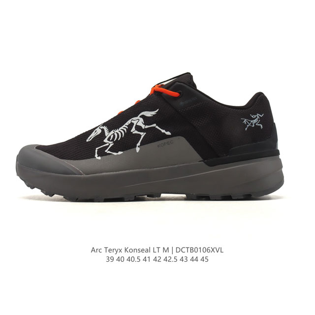 Company Grade Arc'teryx Konseal Outdoor High-Performance Ultralight Comfortable Breathable Casual Sports Hiking and Mountaineering Shoes. This Arc'teryx Konseal outdoor shoe is designed to handle most technical routes and long hikes. Inspired by trail running shoes, it adds flexibility and lightness on top of support and protection. The Vibrammegagrip outsole provides excellent grip on both dry and wet surfaces, while the TPU sole and outsole lugs enhance stability. The minimalist design reduces debris entry and easily blends into urban environments. Type: Men's Shoes Sizes: 39-45 (including half sizes) Code: Dctb0106Xvl