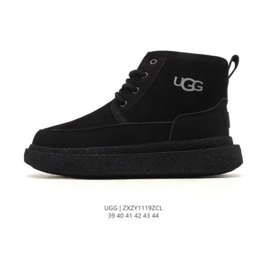 Factory Grade Authentic Ugg Retro Men's High-Top Sneakers, Trendy Boots, Leather and Fur Integrated Thick Sole, Height-Increasing Martin Boots , Original Single-Item Newme. Based on the original design, retro color blocking is added; a classic return, embodying the life of Generation Z youth; a walking fashion trendsetter. Material: High-gloss fabric with cowhide patchwork, wool lining, rubber outsole. Item No.: M 1144096 Size: 39-44 Code: Zxzy1119Zcl