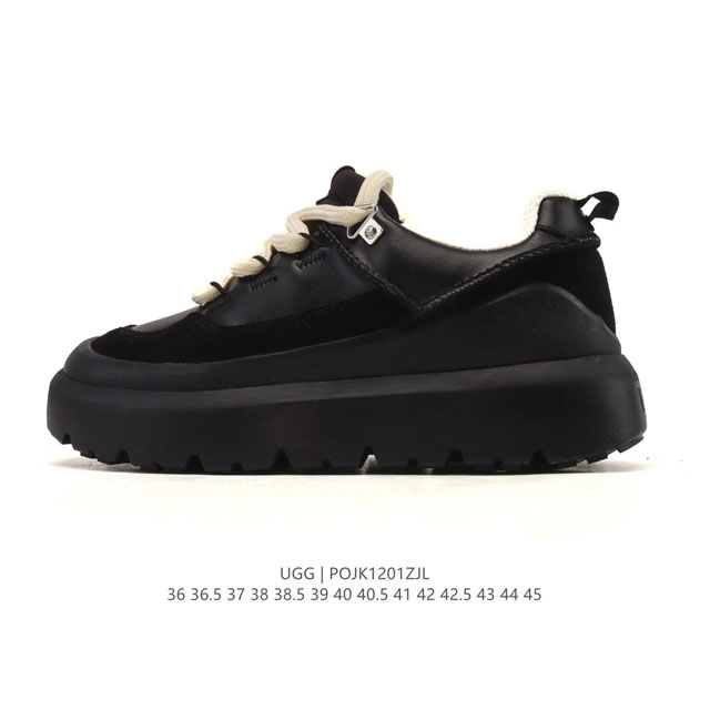 Factory Grade Authentic Ugg Snow Boots Retro Men's and Women's Low-Top Lace-up Sneakers Trendy Boots, Leather and Fur Integrated Thick Sole Height Increasing Martin Boots Original Single-Item Newme, with Retro Color Blocking Added to the Original; Classic Return, Interpreting the Life of Generation Z Youth; A Walking Fashion Icon. Material: High-gloss fabric with cowhide patchwork, wool lining, rubber outsole. Item No.: M 1144096 Size: 36-45 (including half sizes) Code: pojk1201Zjl