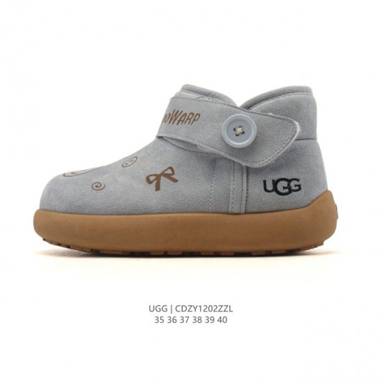 Factory-grade Ugg women's snow boots, made in Guangdong. Features a TPU molded upper with inlaid antelope brown wool, making it waterproof. It uses a 7mm Uggpure embedded wool lining and a removable Uggpure embedded wool insole. The Treadlite lightweight outsole offers excellent slip resistance, abrasion resistance, and good elasticity. A new autumn/winter style, endorsed by Zhou Dongyu. American luxury brand Ugg series mid-calf fleece-lined casual versatile ankle boots. Type: Women's Shoes; Sizes: 35-40; Code: Cdzy1202Zzl