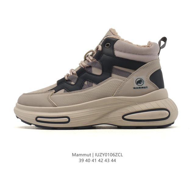 Mammut hiking boots, new autumn/winter style, fleece-lined and thickened, platform, height-increasing sports boots. These are very hardcore Mammut hiking boots. They feature a professional sole design, a durable rubber outsole, and a special anti-slip tread pattern, providing stable support and excellent slip resistance on rugged mountain trails and slippery rocks. This feature makes outdoor adventures safer, reducing the risk of falls due to slippery or uneven ground. Mammut, a brand specializing in outdoor equipment, has won widespread acclaim for its high-quality, high-performance products. Mammut hiking boots, as the brand's star product, have become the first choice for many outdoor enthusiasts due to their superior performance and comfortable wearing experience. Mammut hiking boots have a very good reputation. Many users say that these shoes are comfortable to wear, have good anti-slip properties, and excellent waterproof and breathable performance, making them a reliable partner for outdoor adventures. DDD Sizes: 39-44 DDD Code: Iuzy0106Zcl DDD