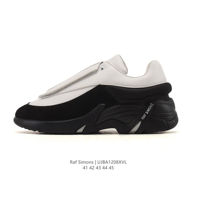 New Arrival - Company Grade Raf Simons Comfortable and Versatile Low-Top Dad Shoes for Men. Features include a rubber sole, lace-up design, round toe, logo detailing, casual athletic shoes, black colorway, 37-inch patchwork design, perforated details, embossed logo on the side, round toe, front lace-up, logo-printed tongue, rear pull tab, and thick rubber sole. Sizes: 41-45. Code: Ujba1208Xvl.