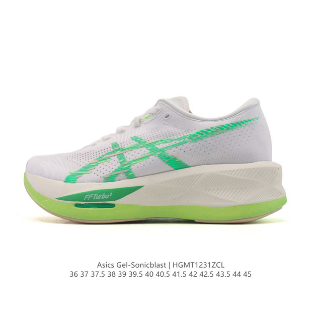 New Company-Grade ASICS 2025 Men's and Women's Sonicblast Running Shoes. The ASICS Sonicblast is a brand new rebound running shoe series launched by ASICS in 2025, primarily designed for speed training. It utilizes Ff Turbo Squared midsole technology , emphasizing efficient response and a fast experience, suitable for everyday tempo runs and long-distance training. It features a dual-layer Flytefoam Turbo foam + Pebax plate structure. The upper layer of Ff Turbo Squared foam provides a bouncy yet supple feel, while the lower layer of Ff Blast Max stabilizes landing posture, and the Pebax plate enhances propulsion. The ASICS Grip rubber outsole showed only slight wear after 30 miles of testing, balancing grip and durability. Suitable for 5-10km tempo runs, easy runs, and long-distance training up to half marathons, the non-carbon plate design lowers the barrier to entry, suitable for advanced runners seeking to increase speed. The upper is made of jacquard mesh material, offering both breathability and a snug fit; the stitched tongue and heel support cup provide stable lockdown, and reviews show it is compatible with most foot shapes. Product Code: 1011C083-750 Sizes: 36-45 (including half sizes) Code: Hgmt1231Zcl