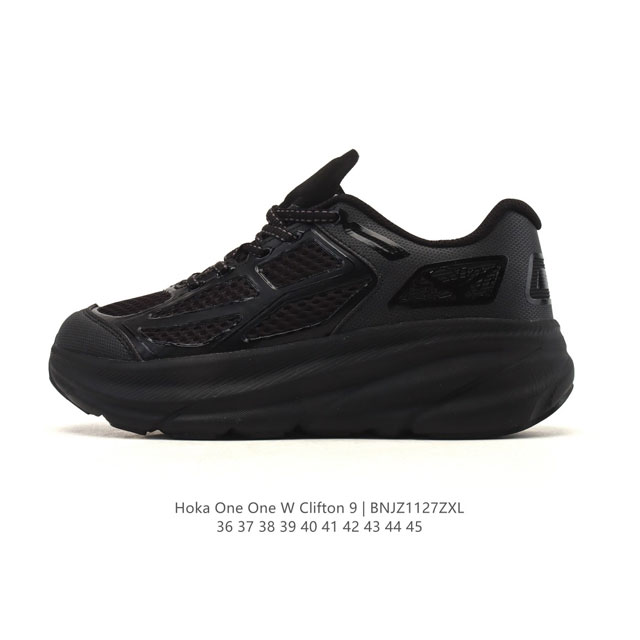 New Hoka One One releases the upgraded Clifton 10, a lightweight, cushioned casual running shoe for men and women. The Hoka One One Clifton series is their best-selling road running shoe. The Clifton Edge, launched in 2020, features a one-piece woven upper with a multi-hole pattern design, using different densities of fabric in different areas, giving it a thicker appearance while providing good breathability. The forefoot uses an embossed TPU patch to enhance the upper's coverage and provide stronger protection and support. The iconic Hoka logo on the heel adds to the shoe's visual appeal. The midsole uses a new high-rebound foam, and the two-tone outsole also uses a thick layer of rubber EVA foam, offering high responsiveness while maintaining cushioning and lightweight design. The outsole features a wide design typical of road running shoes, with dense treads of varying depths in the forefoot and heel for both stability and traction. This shoe boasts a retro and exaggerated look, is incredibly lightweight, and is a great choice for everyday wear. Sizes: 36-45 Code: Bnjz1127