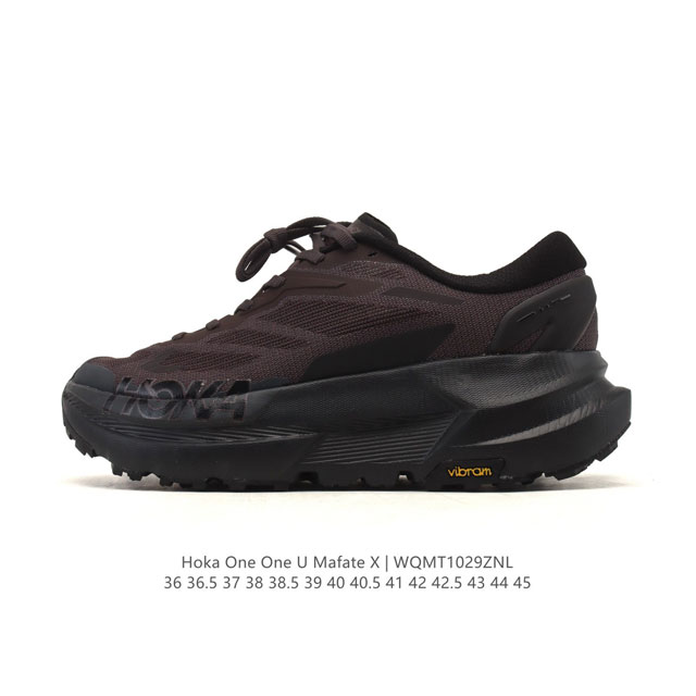New Product: Company Grade Hoka One One Men's & Women's Mafate X Trail Running Shoes, Thick-Soled Height-Increasing Sports Shoes, Mountain Fog 20 12 Us. This is a long-distance trail running shoe that achieves an excellent balance between ultimate cushioning and stability. In addition, the Mafate X also prioritizes comfort, control, grip, and carbon plate propulsion. The Mafate X features a classic dual-layer midsole design, with a lower high-elastic supercritical foam frame embedded with an upper forefoot Peba foam layer. This soft and comfortable midsole not only provides precise cushioning and rebound and stable support but also delivers powerful energy return. The Mafate X uses the classic Vibram Megagrip outsole, combined with 3.5mm lugs, to improve precise grip on all terrains. Encased in the outsole texture, the Mafate X's unique "pizza crust" appearance cleverly balances professional performance and fun, allowing runners to easily handle diverse and complex terrain. The upper is made of woven breathable fabric, lightweight and comfortable, offering excellent support while also providing drainage. The 3D wrapping structure combined with the woven breathable mesh and dynamic support system easily handles complex and varied environments. The heel counter is well-padded, and TPU adds impact protection. This trail running shoe is specifically designed for long-distance endurance challenges, suitable for long-distance trail running on various terrains. It meets the needs of trail runners in different environments, providing excellent performance support for runners in both daily training and trail races, including technical mountain trails and long-distance endurance races. Sizes: 36-45 (including half sizes). Code: Wqmt1029Znl