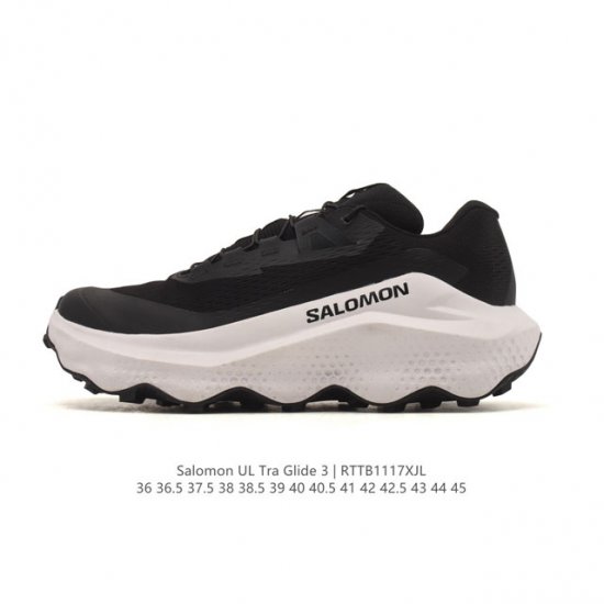 New Product: Salomon Unisex Urban Light Outdoor Comfortable Breathable Cushioning Running and Trail Running Shoes Ultra Glide 3 Black 477422. The Salomon Ultra Glide 3 is a running shoe designed specifically for trail running and long-distance training, attracting attention for its excellent cushioning, slip resistance, and support. Cushioning: Featuring an Energy Foam midsole with a 35mm forefoot and 41mm heel thickness, it provides strong cushioning and effectively reduces fatigue during long-distance running. Stability System: Utilizing the Quicklace lacing system, Sensefit instep lock-up, and Endofit elastic tongue technology, these three technologies work together to enhance in-shoe stability, especially suitable for foot fixation during downhill runs. Outsole Traction: The unique wave-shaped geometric rubber outsole exhibits excellent slip resistance and traction on complex terrains such as gravel roads, but some users have reported that its abrasion resistance at rock face seams could be improved. This shoe is recommended as the first long-distance trail running shoe, suitable for trail races of 50km and above. Testers report that the upper is comfortable and provides good support, but it may not be suitable for the hot summer weather in southern regions. Besides its performance, its low-top design and minimalist style also make it a versatile choice for everyday wear. Sizes: 36-45 (including half sizes). Code: Rttb1117Xjl