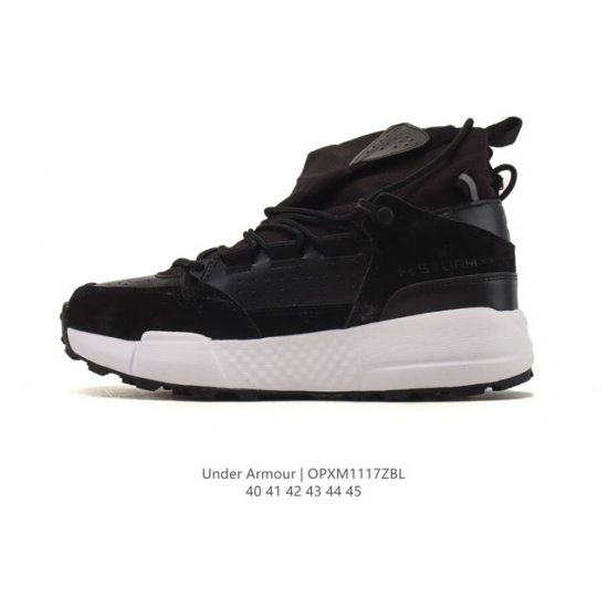 Under Armour Men's Platform Boots with Micro G Valsetz - Mid-Cut Hiking Leather Tactical Boots. Features a suede upper with a durable TPU toe cap for enhanced durability and foot protection. A sock-like design helps resist weather changes, ensuring longevity. Pull-out loops at the front and back facilitate easy on and off. A molded Contoura Support insole with cushioning foam provides comfort and stability. A durable, high-performance rubber outsole offers excellent traction even on rough terrain. The midsole utilizes full-length Micro G foam for sustained cushioning and rebound. Boot height: approx. 15.2cm. Weight based on manual measurement of size 42.5: approximately 503g; weight may vary slightly depending on size. Lacing: Standard lacing. Sizes: 40-45. Code: Opxm1117Zbl.