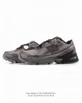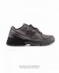 New Balance Mr740 Nb New Balance series retro dad-style casual running shoes. Made from a lightweight cowhide leather upper with breathable mesh lining and padded fabric, the T-Beam outsole provides arch support and maintains gait stability. The heel features exposed cushioning rubber. The shoe is covered in various shades of gray, with the toe decorated with light blue accents. The mesh lining uses irregular color blocks to create a distressed aesthetic. The yellowed sole further enhances the retro feel.