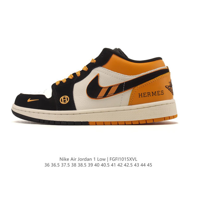 Company Grade Nike Air Jordan 1 Low AJ1, a low-top retro-style casual basketball shoe. Inspired by the original 1985 model, this shoe offers a fresh take on a simple yet classic look, feeling familiar yet innovative. Stitching details and an embroidered Wings logo on the heel highlight the Jordan brand's distinctive style. The leather upper provides excellent structure and durability. Nike Air cushioning technology in the sole creates a lightweight and shock-absorbing feel, while the rubber outsole provides exceptional traction, making it a great everyday choice. Features include the Wings logo on the heel, perforated toe, and a foam midsole. Product Code: 553558 Sizes: 36-45 (including half sizes) Code: Fgfi1015Xvl