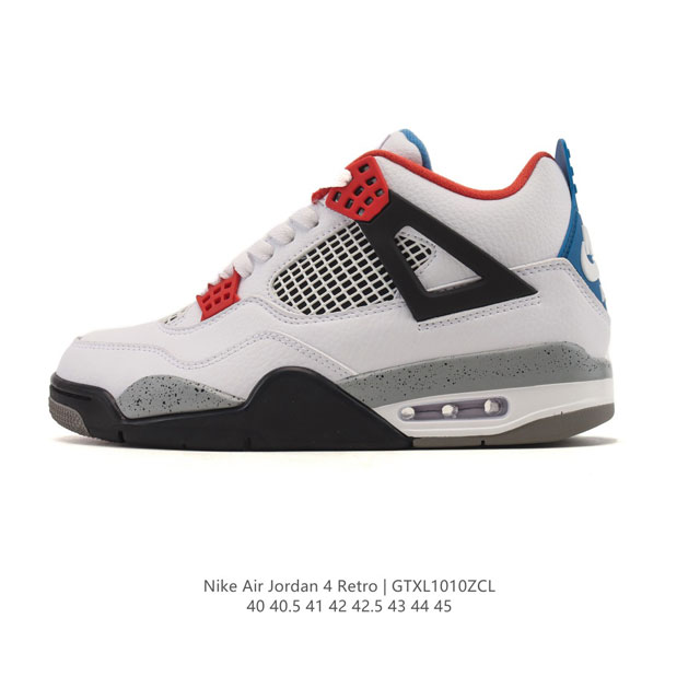 Company Grade Nike Air Jordan 4 Retro Og Michael Jordan AJ4 Mid-Top Retro Casual Sports Basketball Shoes. Adhering to the design philosophy of lightweight speed basketball shoes, this shoe reduces weight while improving comfort. The midsole continues the use of a split, visible Air Sole unit in the heel, a feature inherited from its predecessor. The lacing holes and heel pull tab are inspired by basketball nets, cleverly integrating basketball into the shoe's design, giving it a fluid, rhythmic, and elegant feel. Type: Men's Shoes Product Code: Fv5029 Sizes: 40-45 (including half sizes) Code: Gtxl1010Zcl