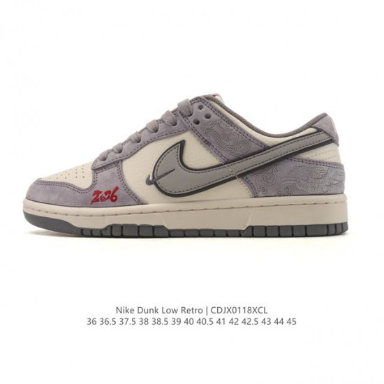 Company Grade Nike Dunk Low Retro Sneakers, 2026 New Year of the Horse Limited Edition. As a classic basketball shoe from the 80s, initially designed for hardwood courts, it later became a fashion icon sweeping the streets. Now it returns with classic details and a retro basketball style. The upper combines leather and synthetic materials for durability and exceptional softness. The foam midsole creates a lightweight and responsive cushioning effect, while the rubber outsole with a circular pivot design provides exceptional traction, showcasing classic style. From backboards to skateboards, the influence of the Nike Dunk is undeniable. Although it debuted as a basketball shoe in 1985, its flat and grippy sole captured the attention of skateboarders, making it an ideal choice for skateboarding. For decades, the Dunk has resonated with skateboarders worldwide, releasing countless colorways, pursuing an ideal balance of creativity and functionality, and showcasing the charm of subcultures. DDD Type: Men's and Women's Shoes DDD Item Number: Sd6868 DDD Sizes: 36 36.5 37.5 38 38.5 39 40 40.5 41 42 42.5 43 44 45 DDD Code: Cdjx0118Xcl DDD