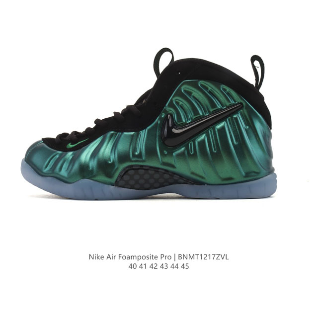Company-grade Nike Air Foamposite Pro basketball shoes. Representing the pinnacle of sneaker manufacturing technology at the time, domestic sneaker enthusiasts affectionately call them "Foamposite" due to the homophony of "Pro." The shoe's upper is constructed from a sturdy and resilient one-piece molded Foamposite material, boasting a unique and futuristic appearance. The upper features a full-length Dynamic-Fit elastic inner bootie, with soft padding greatly enhancing comfort and support, providing excellent foot protection. The midsole continues the powerful cushioning configuration of a dual-layer OOM Air unit and a large carbon fiber plate. Product Code: 624041-701 Sizes: 40-45 Code: Bnmt1217Zvl