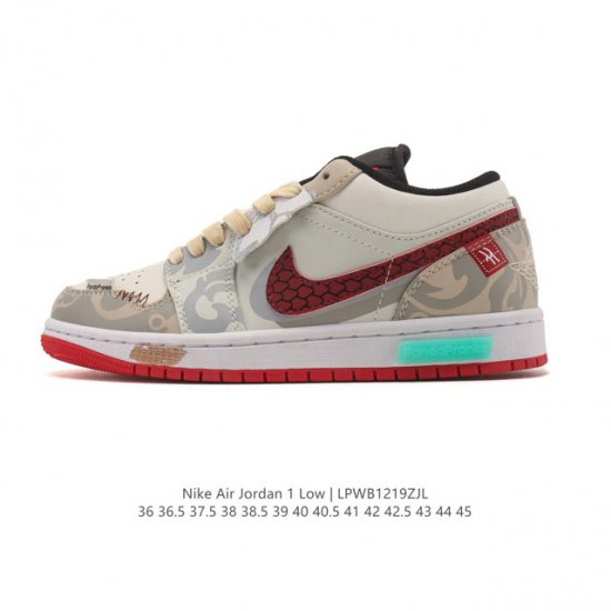 Company-grade Nike Air Jordan 1 Low AJ1, a limited-edition low-top retro-style casual basketball shoe released in 2026 for the Year of the Horse. Inspired by the original 1985 model, this shoe offers a fresh take on a classic and simple look, feeling familiar yet innovative. Stitching details and an embroidered Wings logo on the heel highlight the unique style of the Jordan brand. The leather upper provides excellent structure and durability. The sole incorporates Nike Air cushioning technology for a lightweight and shock-absorbing feel, while the rubber outsole provides exceptional traction, making it a great everyday choice. Features include a Wings logo on the heel, perforated toe, and a foam midsole. Type: Men's/Women's Shoes; Product Code: 553558; Sizes: 36-45 (including half sizes); Code: Lpwb1219Zjl