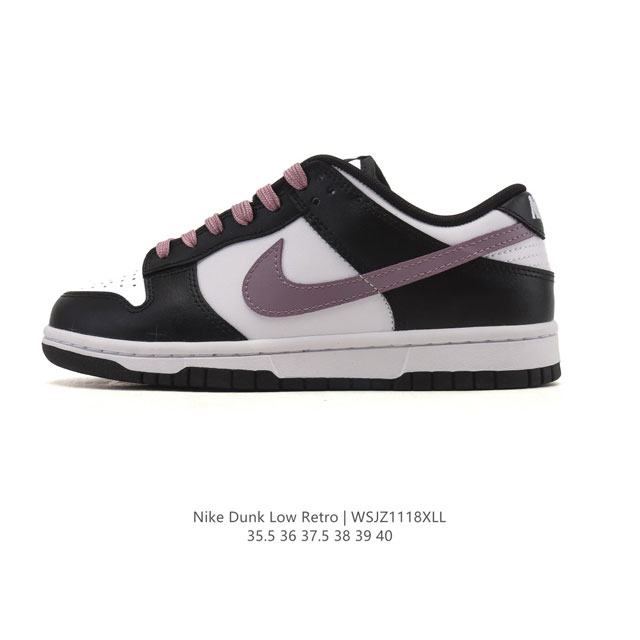 Company-grade Nike Dunk Low Retro sneakers. As a classic basketball shoe from the 80s, initially designed for hardwood courts, it later became a street style icon, now returning with classic details and a retro basketball aesthetic. The leather and synthetic upper is durable and exceptionally soft. A foam midsole provides lightweight and responsive cushioning, while the rubber outsole with a circular pivot point design delivers exceptional traction, showcasing its classic style. From backboards to skateboards, the influence of the Nike Dunk is undeniable. Although it debuted as a basketball shoe in 1985, its flat and grippy sole captured the attention of skateboarders, making it an ideal choice for skateboarding. For decades, the Dunk has resonated with skateboarders worldwide, releasing countless colorways, pursuing an ideal balance of creativity and functionality, and showcasing the vibrancy of subcultures. DDD Type: Women's Shoes DDD Item Number: Bz2501 DDD Size: 35.5-40 DDD Code: Wsjz1118 DDD