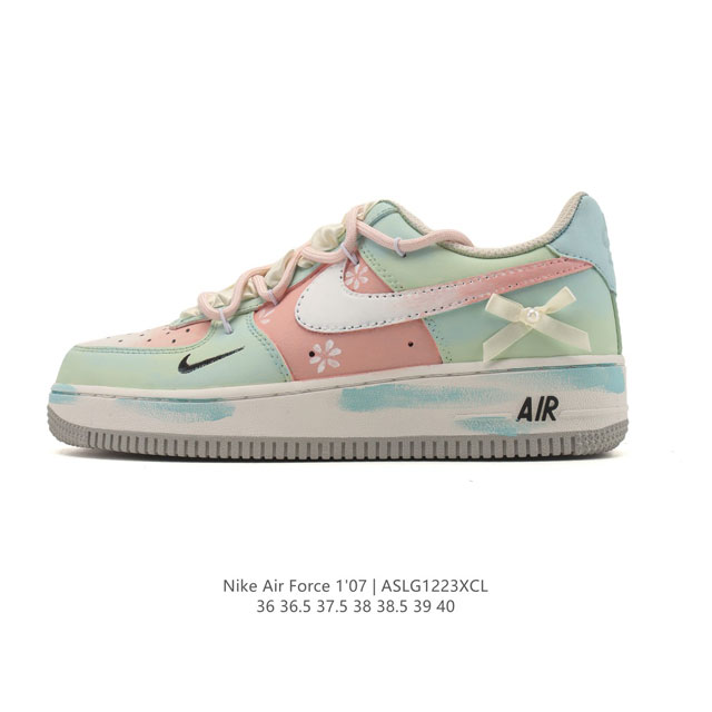 Factory Grade Nike Air Force 1 '07 Low, deconstructed double-lace, thick-soled, height-increasing, versatile athletic shoe. Made with original last and cardboard, this authentic Air Force 1 shoe is exclusively for export. Features a full-length internal honeycomb air cushion, original box and accessories, original factory midsole stamp, and perfect upper. Officially listed. Product Code: Df0188 Sizes: 36, 36.5, 37.5, 38, 38.5, 39, 40 Code: Aslg1223Xcl
