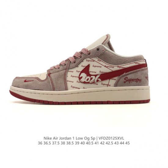 Factory Grade Nike Air Jordan 1 Low AJ1 (2026 New Low-Top Retro-Style Casual Basketball Shoes). This shoe draws design inspiration from the original 1985 model, offering a refreshed and classic look that feels familiar yet innovative. Stitching details and an embroidered Wings logo on the heel highlight the Jordan brand's distinctive style. The leather upper provides excellent structure and durability. The sole incorporates Nike Air cushioning technology for a lightweight and shock-absorbing feel, while the rubber outsole provides exceptional traction, making it a great everyday choice. Features include a Wings logo on the heel, perforated toe, and a foam midsole. Type: Men's/Women's Shoes; Product Code: 553558; Sizes: 36-45 (including half sizes); Code: Vfdz0125Xvl
