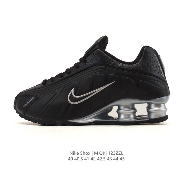 New Nike Shox R4 Tech-Style Sneakers. Metallic upper + super-sized cylinder sneakers! The Nike Shox R4 looks incredibly cool on foot. A classic shoe from the past decade, the Nike Shox R4 is a perfect blend of retro and modern styles. This sneaker combines modern design with retro elements, truly eye-catching! It not only boasts a modern design but also incorporates retro elements, a perfect combination of fashion and classic. Utilizing Shox technology, a cushioning system composed of supportive cylinders provides excellent shock absorption for your feet. Wearing them feels like being surrounded by spacesuits and astronaut gear; the sleek lines and laser-perforated design seem ready to propel you into the future. Product Code: Bv1111 Sizes: 40-45 (including half sizes) Code: Mkjk1123Zzl