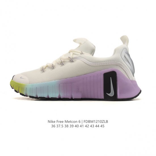 Nike 2025 New Women's Free Metcon 6 Training Shoe - All-Round Performance Shoe with Platform Heel. Unlock endless possibilities in your workout with the Nike Free Metcon 6 Training Shoe. This training shoe features enhanced forefoot flexibility and a foam-reinforced heel, helping you navigate dynamic movements in jumps and cardio classes while providing exceptional stability in weightlifting. The flexible midsole and outsole support free movement. Laser-groove design in the outsole enhances flexibility, giving you an edge in jumps, planks, and plyometrics. The curved forefoot design delivers exceptional agility and speed during explosive bursts. Just the right amount of support creates a stable feel. Carefully tuned support combined with thoughtfully arranged cushioning provides a stable stride. Foam in the heel provides excellent stability, helping you unleash your full potential. The upgraded cushioning system delivers a comfortable training experience. The cushioning design provides effective protection when your feet strike the ground. Laser-grooved forefoot and midsole foam offers exceptional flexibility and comfort. The upper uses breathable and supportive mesh material, providing outstanding flexibility in key areas to help you easily control movements like lunges, squats, and jumps. The traditional lacing system combined with Flywire cables allows for adjustable tightening and a dynamic fit, ensuring a secure and comfortable fit during training. The traction pattern adapts to various surfaces, making it suitable for a wide range of training surfaces and activities. Product Code: Hv5228 Sizes: 36-45 Code: Fdbm1210Zlb