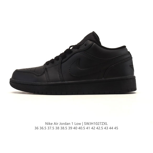 Nike Air Jordan 1 Low AJ1, a low-top retro-style casual basketball shoe. Inspired by the original 1985 model, this shoe offers a fresh take on a simple yet classic look, feeling familiar yet innovative. Stitching details and an embroidered Wings logo on the heel highlight the distinctive style of the Jordan brand. The leather upper provides excellent structure and durability. The sole incorporates Nike Air cushioning technology for a lightweight and shock-absorbing feel, while the rubber outsole provides exceptional traction, making it a great everyday choice. Features include the Wings logo on the heel, perforated toe, and a foam midsole. Product Code: 553558 Sizes: 36-45 (including half sizes) Code: Swjh1027