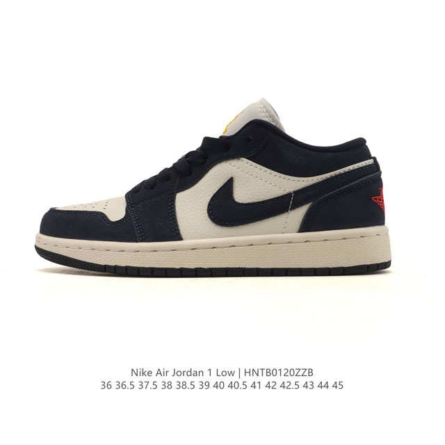 Nike Air Jordan 1 Low AJ1, a new low-top retro-style casual basketball shoe released in 2026. Inspired by the original 1985 model, this shoe offers a fresh take on a simple yet classic look, feeling familiar yet innovative. Stitching details and an embroidered Wings logo on the heel highlight the distinctive style of the Jordan brand. The leather upper provides excellent structure and durability. The sole incorporates Nike Air cushioning technology for a lightweight and shock-absorbing feel, while the rubber outsole provides exceptional traction, making it a great everyday choice. Features include a Wings logo on the heel, perforated toe, and a foam midsole. Type: Men's/Women's Shoes Product Code: 553558 Sizes: 36-45 (including half sizes) Code: Hntb0 Zzb