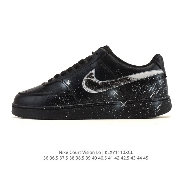 Nike Court Vision Low, a low-top retro basketball shoe with a collegiate style. Continuing the retro basketball shoe trend of the 80s, it adds collegiate details. The leather and combination upper offers a clean and stylish look, reviving the retro basketball style. Perforated toe and sides provide ventilation, while the rubber outsole offers excellent grip and structural support combined with retro basketball details. Drawing inspiration from mid-1980s basketball shoe designs, it features thick laces, a rounded pivot point on the sole, a retro Swoosh design, a vulcanized construction that cleverly integrates the outsole and midsole, a combination of leather and synthetic materials on the upper, a stitched Swoosh design, perforated toe and sides, and an embossed "Nike" on the heel. Product Code: Dh2987 Sizes: 36-45 (including half sizes) Code: Klxy1110Xcl