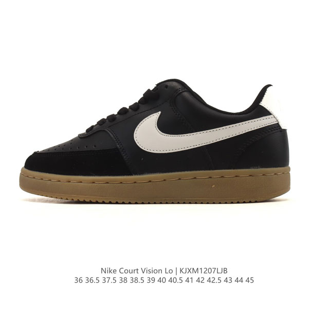 Nike Court Vision Low, a low-top retro basketball shoe with a collegiate style. Continuing the retro basketball shoe trend of the 80s, it adds collegiate details. The leather and combination upper offers a clean and stylish look, reviving the retro basketball style. Perforated toe and sides provide ventilation, while the rubber outsole offers excellent grip and structural support combined with retro basketball details. Drawing inspiration from mid-1980s basketball shoe designs, it features thick laces, the original round pivot point on the sole, a retro Swoosh design, a vulcanized construction that cleverly integrates the outsole and midsole, a combination of leather and synthetic materials on the upper, a stitched Swoosh design, perforated toe and sides, and an embossed "Nike" on the heel. Product Code: Ib2998 Sizes: 36-45 (including half sizes) Code: Kjxm1207Ljb