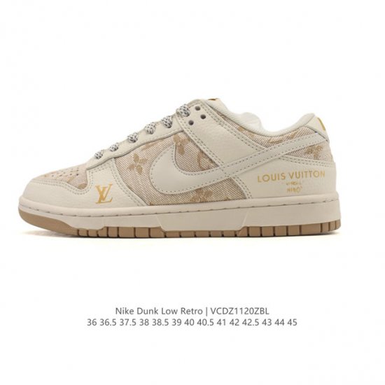 Nike Dunk Low Retro Sneakers, a collaboration with Louis Vuitton. Originally designed for hardwood courts, this classic 80s basketball shoe later became a street style icon, returning with classic details and a retro basketball aesthetic. The upper combines leather and synthetic materials for durability and exceptional softness. A foam midsole provides lightweight and responsive cushioning, while the rubber outsole with circular pivot points offers superior traction, showcasing its classic style. From backboards to skateboards, the influence of the Nike Dunk is undeniable. Although it debuted as a basketball shoe in 1985, its flat and grippy sole captured the attention of skateboarders, making it an ideal choice for skateboarding. For decades, the Dunk has resonated with skateboarders worldwide, releasing countless colorways, pursuing a perfect balance of creativity and functionality, and showcasing the spirit of subculture. DDD Type: Men's and Women's Shoes DDD Item Number: Dv0833 DDD Size: 36-45 (including half sizes) DDD Code: Vcdz1120Zbl DDD