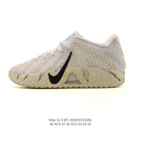 Nike Ja 3 Basketball Shoes: The Nike Ja 3 perfectly embodies Ja Morant's fearless and daring wild style of basketball. The Ja 3 features a significantly different look compared to its predecessors. The Nike Ja 3 continues Ja Morant's signature shoe series with a brand-new appearance, enhancing his performance while helping the next generation of players showcase their style and skill. The Ja 3's design aims to showcase Morant's bold and energetic design style, incorporating his hands-on creativity into the shoe's design, highlighting his continuous contribution to sneaker culture. Based on the "scratch" design of Morant's previous two signature shoes, the DDD model adds a new outsole pattern inspired by his signature "crossover dummy" move, and features a full-length Zoomx foam midsole, providing responsiveness and comfort for his signature explosiveness. The new shoe design is based on the "scratch" design of Morant's previous two signature shoes. Through specially designed ventilation holes on the lightweight mesh upper, it provides excellent breathability for Morant and all players as the game intensifies. The upper seamlessly transitions to a translucent rubber cup-shaped outsole, revealing the innovative midsole: full-length Zoomx foam layered on top of Zoomx fragments, providing responsiveness and comfort for Morant's signature explosiveness. #PerfectShoesForPerfectStudents #ZoomCushioningBasketballShoes #Nike #Morant #Morant3BasketballShoes DDD Product Code: Hf2794 DDD Sizes: 40-45 (including half sizes) DDD Code: We xy0123Zbl DDD