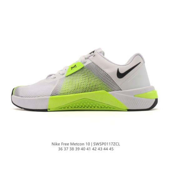 Nike Metcon 10 Men's and Women's Indoor Fitness Shoes, Low-Top, Thin-Soled Fitness Shoes Hj1875. Featuring a robust Hyperlift outsole in the crucial area below the heel, these shoes effectively enhance stability during weightlifting, aiding in movements like squats, deadlifts, and clean and jerk, while providing a free-moving experience. Compared to the Metcon 9, the wider toe box allows for greater toe extension, facilitating more effective power delivery from the entire foot. A revolutionary midsole design, combined with lightweight Reactx foam, enhances energy return. The outsole incorporates flex grooves for flexible, responsive cushioning during high-intensity training such as box jumps and sprints. High-wear areas like the midfoot and toe incorporate a durable, taut texture, meticulously arranged for exceptional grip and durability. A novel traction pattern creates a smooth, taut surface, allowing you to easily handle wet surfaces. A midfoot strap design securely holds your feet firmly in place by lacing. Combining a robust heel counter and lace-up storage design, these shoes help you focus on adjusting your posture, preventing shifting or slipping. The perforated, finely crafted mesh design creates excellent breathability, while the precise and lightweight rubber midsole offers superior performance and flexibility compared to the Metcon 9's sturdy plastic heel clip, ensuring durability and aiding in handstand push-ups. Sizes: 36-45 Code: Sws Zcl