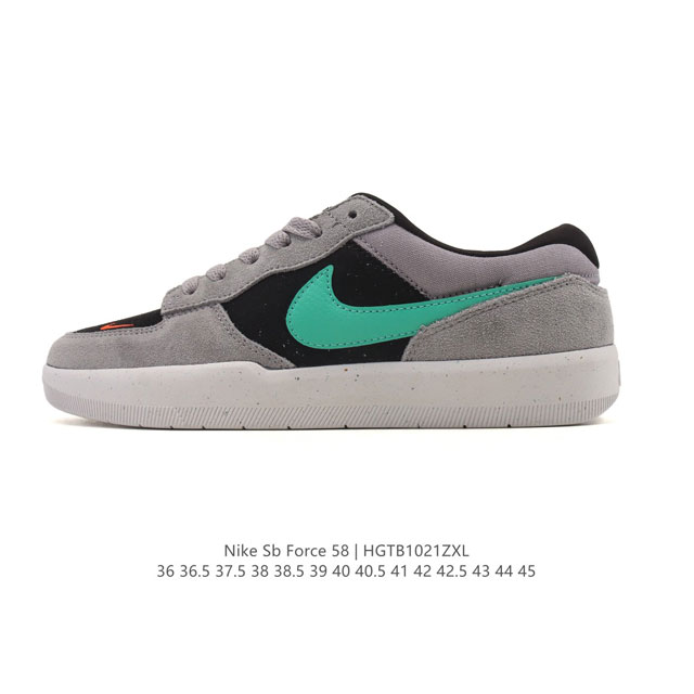 Nike SB Force 58 Skateboard Shoes. This is a piece that brings cutting-edge innovation to the streets, featuring a vulcanized cup sole for excellent durability and flexibility. Using soft leather overlays and ventilated details on the upper, it incorporates classic basketball style from the start, and this colorway reinvents the shoe. Type: Men's/Women's Shoes Style Code: Dv5477 Sizes: 36-45 (including half sizes) Code: Hgtb1021