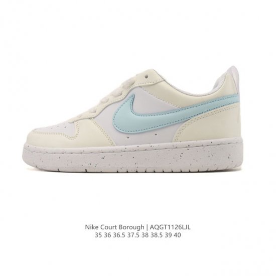 Nike Women's Court Borough Low Sneakers. 1. The leather upper combined with a mesh tongue provides stable support and improved breathability while offering a superior look and feel. The elastic insole is durable, comfortable, and enhances cushioning. 2. The Nike Court is also a relatively cost-effective shoe from Nike. The Court's silhouette is similar to the AJ1 Low, and the sole is similar to the Af1, but there are differences due to different materials and positioning. It's a good choice in terms of value. 3. This shoe features a twist point design on the outsole for smooth starts and stops and flexible grip; the Nike logo on the upper showcases the brand's value. Type: Women's Shoes Product Number: Dv5456-300 Sizes: 35-40 (including half sizes) Code: Aqgt1126Ljl