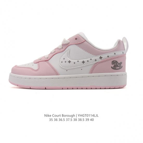 Nike Women's Court Borough Low Sneakers. 1. The leather upper combined with a mesh tongue provides stable support and improved breathability while maintaining a premium look and feel. The elastic insole is durable, comfortable, and enhances cushioning. 2. The Nike Court is also a relatively cost-effective shoe from Nike. The Court's silhouette is similar to the AJ1 Low, and the sole is similar to the Af1, but there are differences due to different materials and positioning. It's a good choice in terms of value. 3. This shoe features a twist point design on the outsole for smooth starts and stops and flexible traction; the Nike logo on the upper showcases the brand's value. Type: Women's Shoes Product Number: Dv5456-300 Sizes: 35-40 (including half sizes) Code: Yhgt0114Ljl