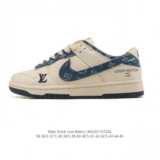 The Nike Dunk Low Retro sneaker, a classic basketball shoe from the 80s, was initially designed for hardwood courts and later became a fashion icon sweeping the streets. Now it returns with classic details and a retro basketball style. The upper combines leather and synthetic materials for durability and exceptional softness. The foam midsole creates a lightweight and responsive cushioning effect, while the rubber outsole with a circular pivot design provides exceptional traction, showcasing its classic style. From backboards to skateboards, the influence of the Nike Dunk is undeniable. Although it debuted as a basketball shoe in 1985, its flat and grippy sole captured the attention of skateboarders, making it an ideal choice for skateboarding. For decades, the Dunk has resonated with skateboarders worldwide, releasing countless colorways, pursuing an ideal balance of creativity and functionality, and showcasing the charm of subcultures. Type: Men's and Women's Shoes Product Code: Xp4940 Size: 36-45 (including half sizes) Code: Mjlg1127