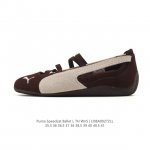 Puma Speedcat Ballet Mary Janes Women's Sports Casual Shoes Puma Women's Speedcat Ls Park Chae-young's same racing shoes suede casual shoes, Puma launches the new Speedcat Ballet shoes, combining the classic Mary Jane shoe shape with the iconic Speedcat thin-soled shoe design, continuing to lead a new chapter in the thin-soled shoe trend. The Puma Speedcat Ballet shoes are based on the Mary Jane shoe prototype, with an open forefoot design and elastic buckles. The smooth silhouette is inspired by ballet flats, elegant and dynamic. The first two color schemes include white and silver. The silver model cleverly incorporates the metallic tones of the F1 car, presenting a unique mix-and-match style.